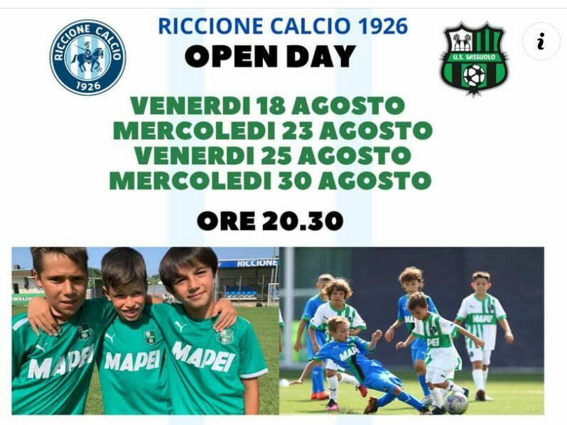 In programma una serie di Open Day presso il campo sportivo in erba di Spontricciolo in Via Moncalieri 29 Riccione riservato a chi ha compiuto 5 anni fino ai 13 anni.